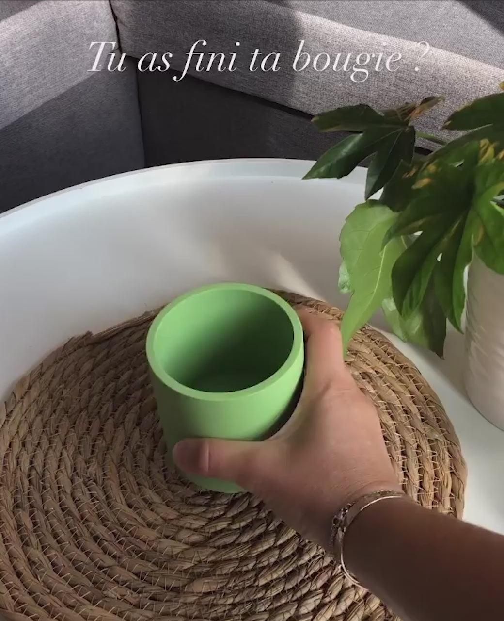 • Une fois ta bougie finie, tu peux enlever les résidus de cire de 2 façons : soit en versant de l’eau bouillante dans le pot. Attends que l’eau refroidisse, puis récupère les résidus remontés à la surface. Soit place ton pot au congélateur pendant 1H, puis racle avec une cuillère. Tu pourras ensuite laver ton pot à la main avec du savon et de l’eau.